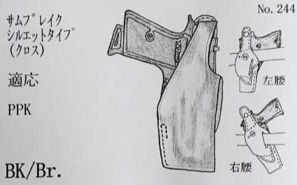 革製 ヒップホルスター サムブレイク シルエットタイプ クロス ワルサー Walther PPK PPK/S 用 茶 ブラウン No.244 イースト・A