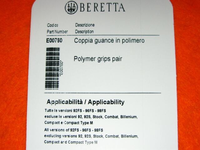 BERETTA社純正 [本物] ベレッタ M92F/M9用 プラ グリップ 「正規品」 QQ-E00760